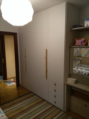 Aquí la única condición que nos puso el cliente es capacidad de almacenaje, tanto para juguetes como para libros, porque es una habitación de unos pequeños adolescentes.